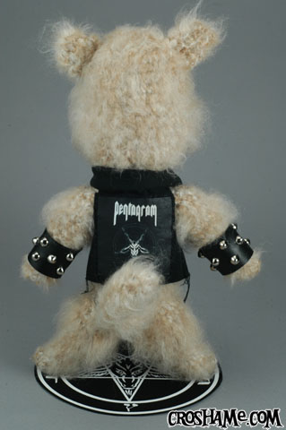 He said their favorite metal band was Pentagram, so I got to work on some sketches, bought some novelty yarn, and ended up making this little guy.