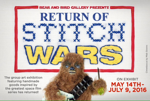 Recently, in a galaxy relatively close in proximity, I was asked to participate in Bear and Bird Gallery‘s upcoming Stitch Wars exhibition (opening May 14th in Lauderhill, FL), an art show where fiber artists give their yarny interpretations of various Star Wars characters.