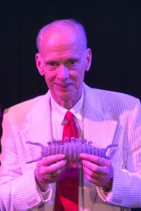 Here’s John and the Tingler piece when he received it last November. Usually he has me send his Christmas gifts to Atomic Books in Baltimore but that year he took it home with him after the show.