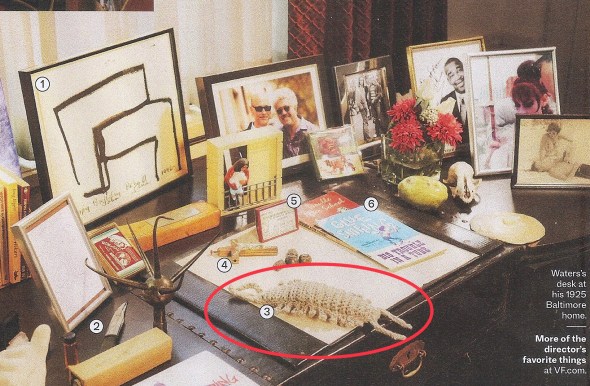 This May my crochet work was included in a Vanity Fair magazine page dedicated to a few of cult director John Waters’ favorite things. Right in the middle of the array of wondrous objects — ranging from an actual prop skull from The Texas Chainsaw Massacre to designer pills that turn your feces into gold — was my crocheted Tingler (#3 on the list) that I made him for Christmas last year.