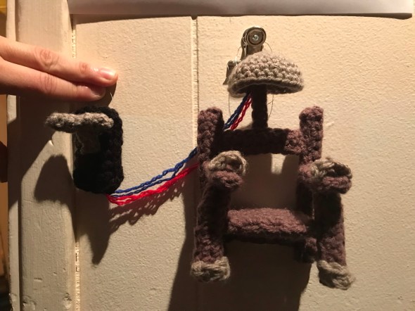 I only found out after I had made this year’s ornament that John decorates his prop electric chair from Female Trouble for Christmas – so now he’ll have a tiny handmade chair to hang on his life-size handmade chair.