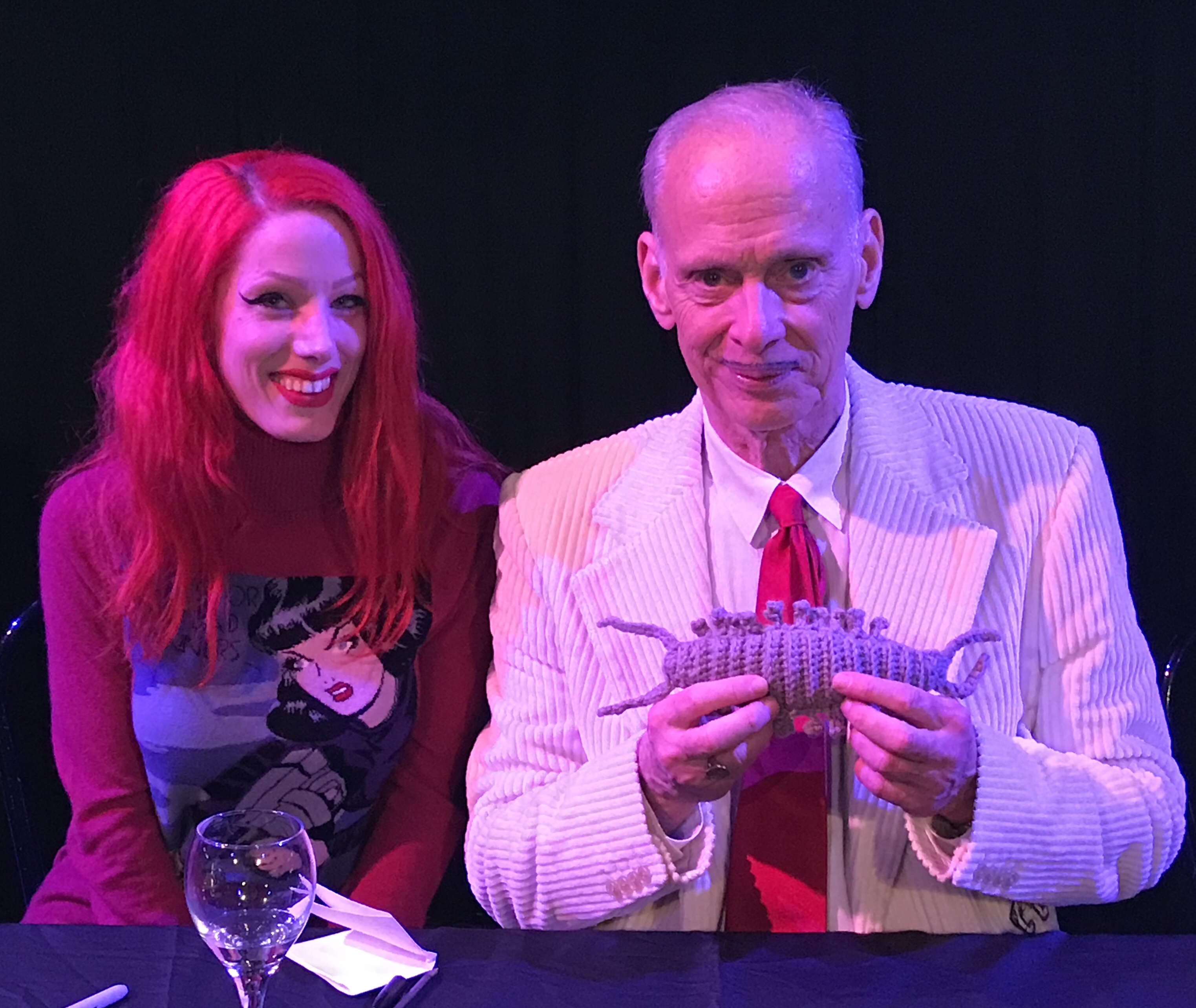 Here’s John and the Tingler piece when he received it last November. Usually he has me send his Christmas gifts to Atomic Books in Baltimore but that year he took it home with him after the show.