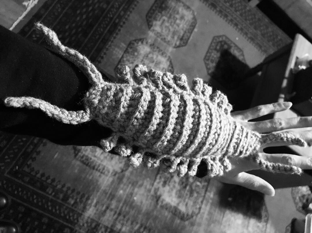 The creature in the film has one normal human hand and one deformed, hairy fly claw — which, again, I needle-felted with love.